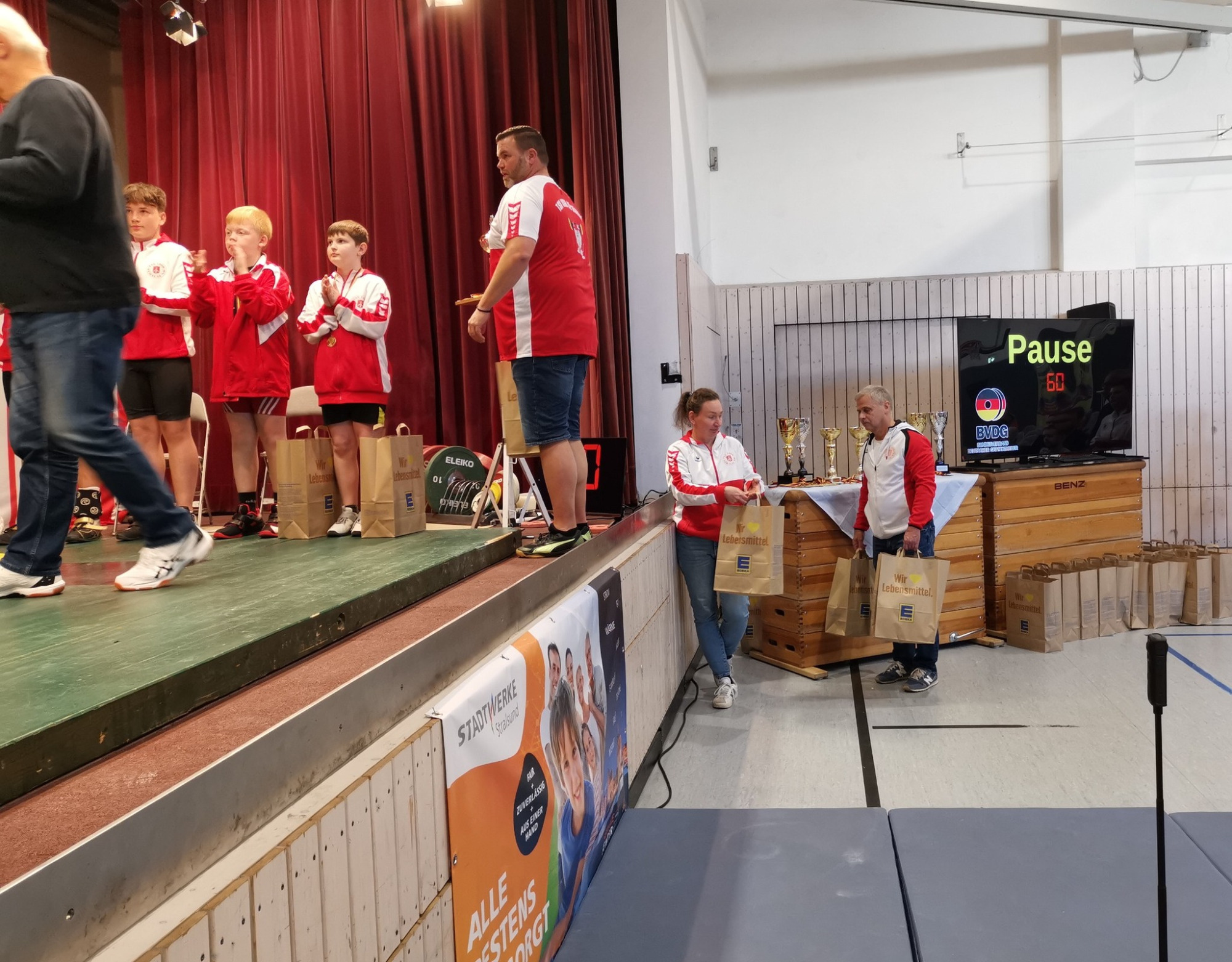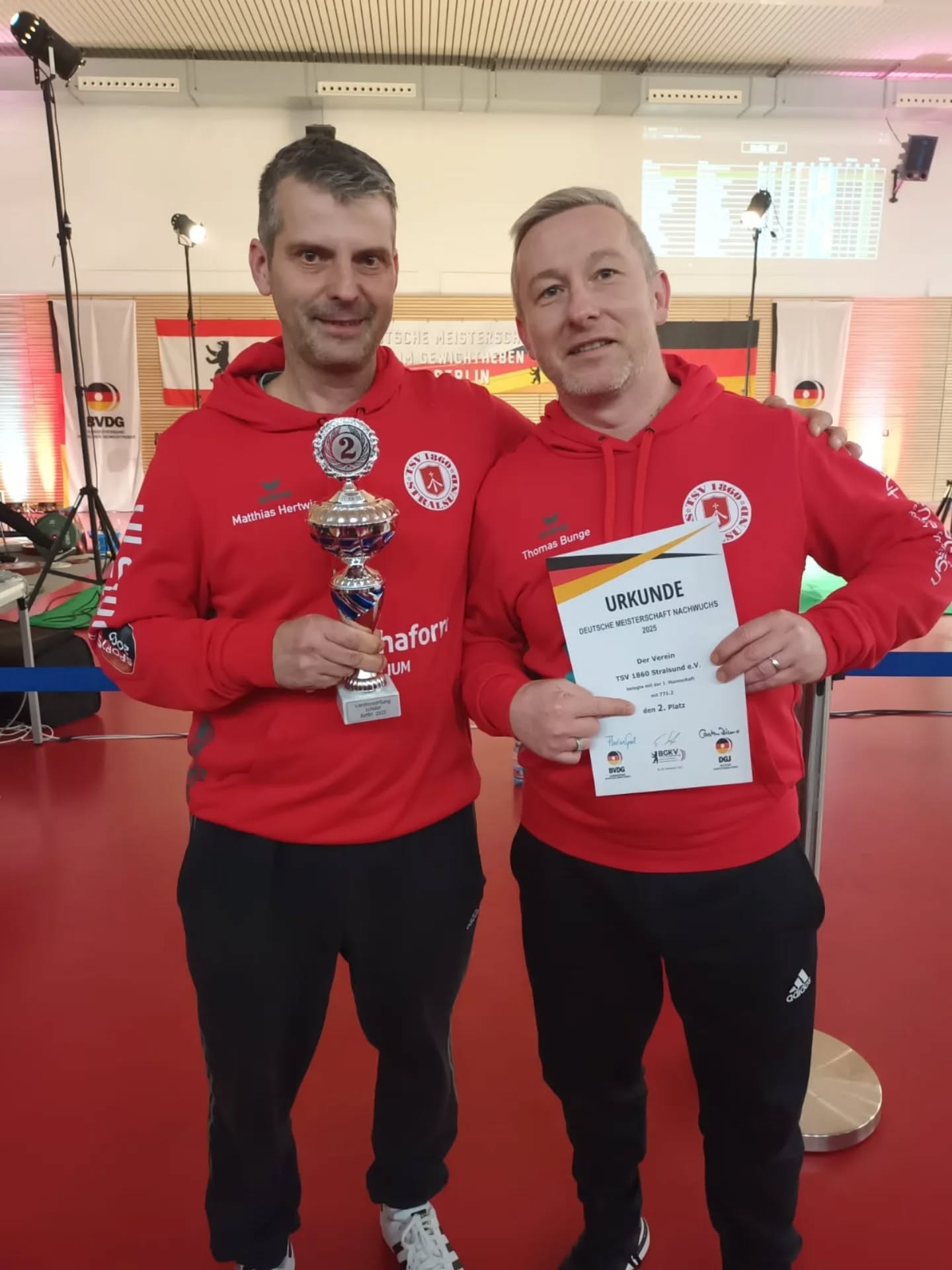 Zusätzlich gab es für Matthias und seine Familie (ohne dessen Unterstützung all die geleistete Arbeit nicht möglich wäre) am darauffolgenden Tag noch eine kleine Aufmerksamkeit seitens des Vereins in Form eines Gutscheins für ein beliebtes Restaurant in Stralsund. Gewürdigt werden sollte das mittlererweile jahrelange Engagement im Nachwuchsbereich, ohne das es die jetzige Abteilung Gewichtheben Kinder/Jugend mit all ihren Erfolgen so nicht geben würde. Somit auch an dieser Stelle nochmal: danke für alles!!